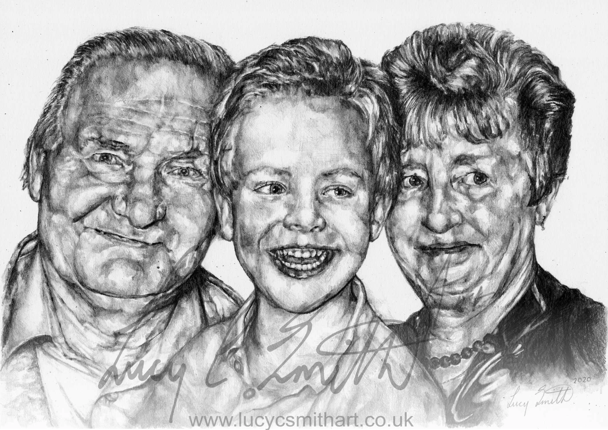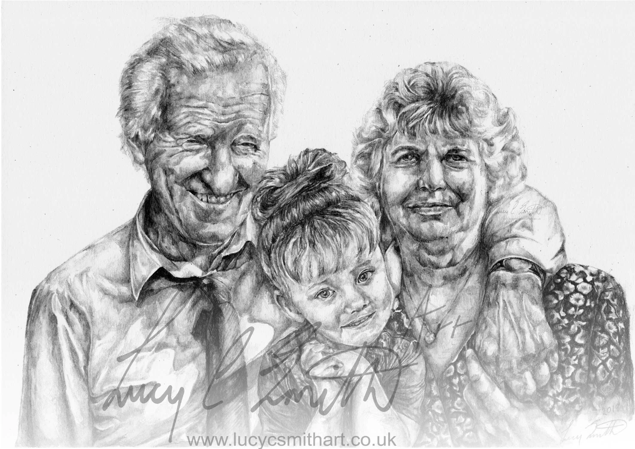 I am, On occasion, challenged to create a single portrait from a combination of photographs. This often marks a special piece, I am entrusted with the responsibility and the privilege to bring passed loved ones and the living together. It is gratifying to know that these artworks create a depth of emotion and play, albeit a small part in helping to heal a broken heart.